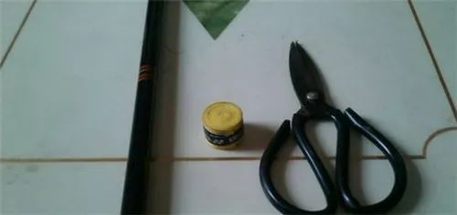 首先先準(zhǔn)備工具,剪刀一把,纏繞帶一卷,需要纏繞的魚竿一把,因?yàn)槭稚系母妥佣家呀?jīng)纏上了吸汗帶,所以就把竿掛拿出來當(dāng)做示范的對象。